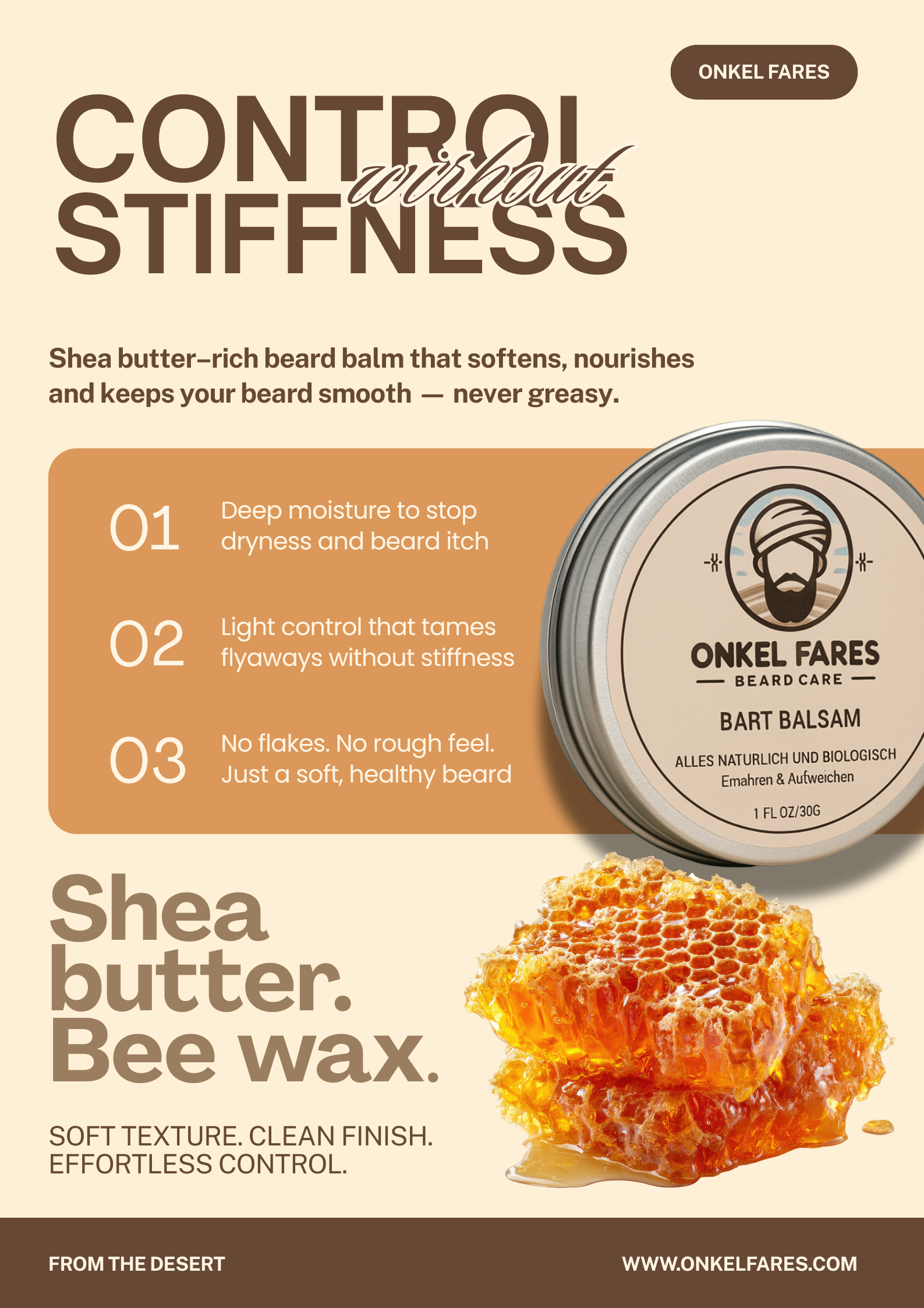 - Beeswax – Shapes beard & tames flyaways.