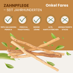Discover the natural way to oral care — the Onkel Fares Miswak stick is a 100% natural toothbrush, harvested from the Salvadora persica tree and used for centuries across the Middle East for its powerful cleansing and antibacterial properties.